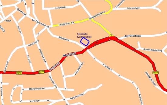 Fahren Sie von oben die Bergstrasse herunter (B 277) in Richtung der Kestnerschule.